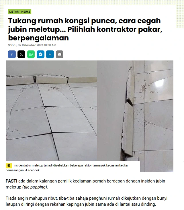 Jimat Kos RenovasiTak perlu tukar jubin! Guna grout sahaja dah cukup untuk nampak macam mozek baru pasang.